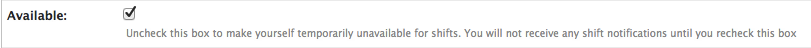 Hooray for you! Click on Edit Your Details on the home page, then uncheck the "Available" tickbox and save. This means you won't receive any shift notifications or requests for availabilities until you recheck the option.